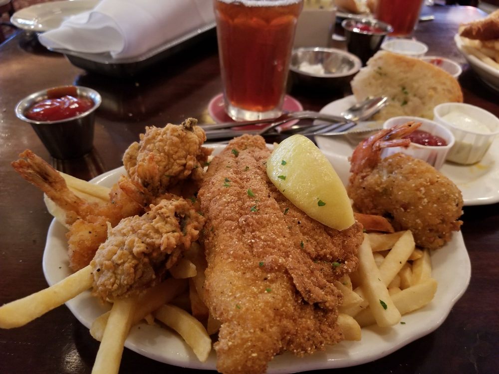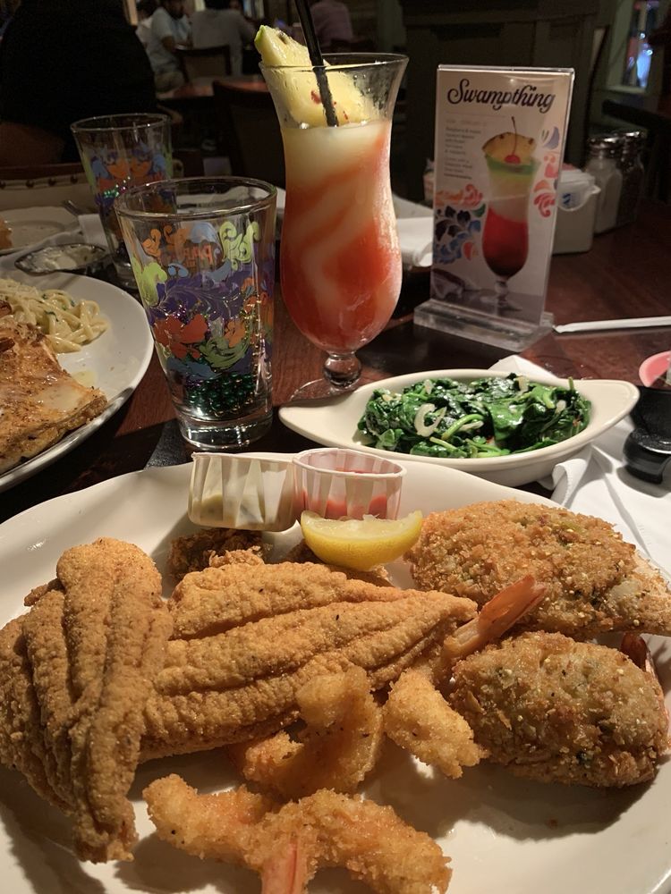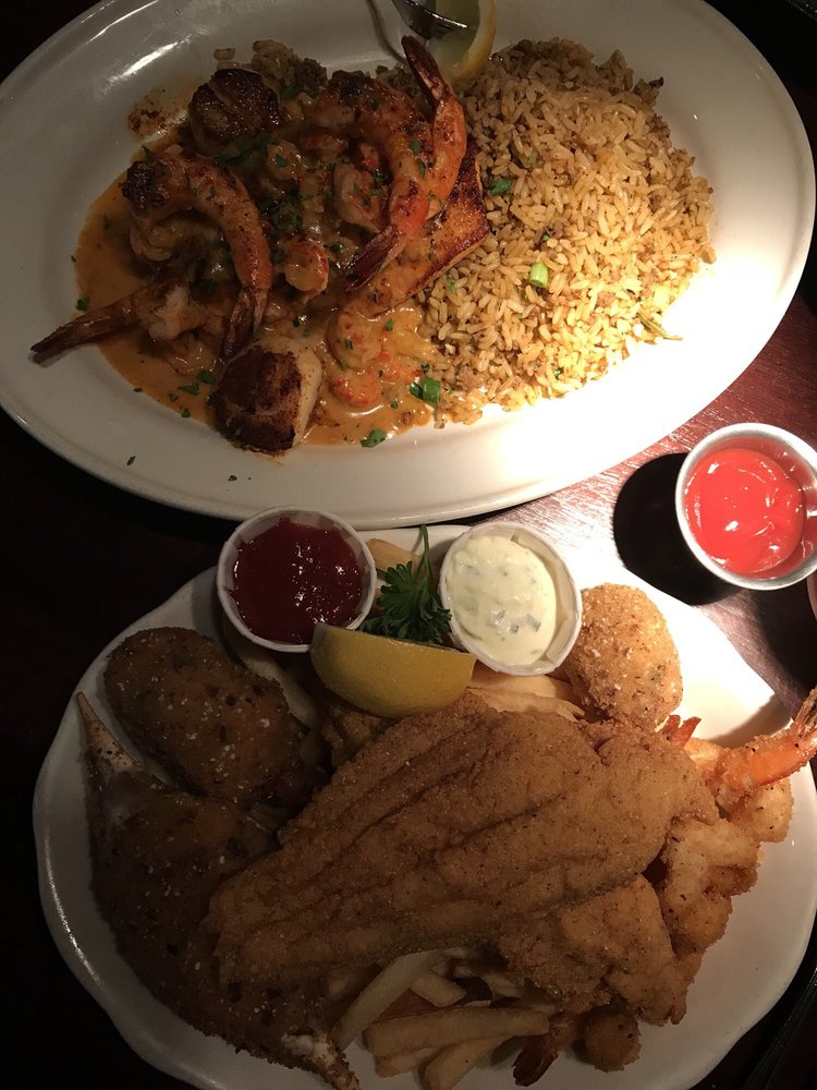 The Seafood Platter focuses more on fish and shellfish. It includes two fried catfish fillets, shrimp, oysters, stuffed shrimp, and stuffed crab. It felt like a seafood feast on one plate.
